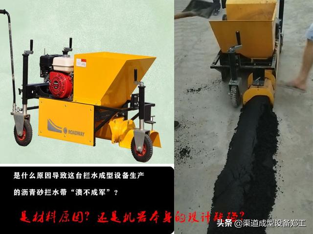 攔水帶成型機的出現讓高速瀝青砂攔水帶工程變得簡單,但是很多問題也出現了。這也是最近很多客戶一直給我反應的問題。這些客戶包括使用我們工廠設備的客戶,也包括使用其他品牌的客戶。我本著我為人人,人人為我的的和諧精神,把這些案例以及為什么會出現這樣的問題分析處理方法放出來,希望能幫助到遇到這些問題的施工隊。